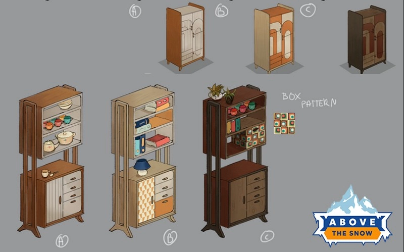 故事背景设定于1960年代的阿尔卑斯山谷。玩家将负责经营一所同时面临雪崩威胁与运营难题的避难所。在这个极端且封闭的环境中,游戏并未打算让玩家成为数值的附庸,而是把如何维系生活美学作为核心议题。从清理冰冷废弃的旧址,到在有限的网格空间里安置一张地毯、一盏床头柜,玩家在《覆雪之上》里的每一次思索与抉择,不只是在搭建生存的空间,更是对居住者生活状态的深切关怀。那些并非生存所必需的家具与娱乐设施,恰恰是人性在极端环境下抵御虚无的最后屏障。