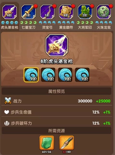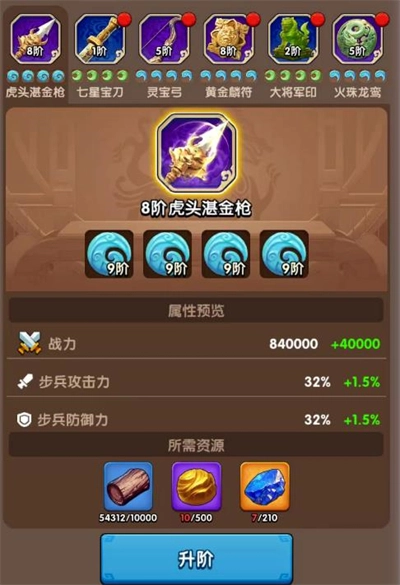 2、神兵升级所需材料为紫檀木、精金与青金石。其中紫檀木和精金的主要获取途径是官渡商店、南蛮入侵玩法,以及每月推出的大型活动;两者的兑换比例为紫檀木:精金=20:1,例如升级1阶需要消耗1000紫檀木搭配50精金。青金石从史诗阶神兵开始需要用到,活动期间一定要优先兑换该材料!神兵升级建议优先选择步兵,因为步兵是战场中的肉盾角色,只有扛住伤害才能保障弓兵的输出空间;其次升级弓兵,最后再考虑点亮骑兵——S4赛季之前骑兵的出场率非常低,千万不要提前投入资源到骑兵神兵上!