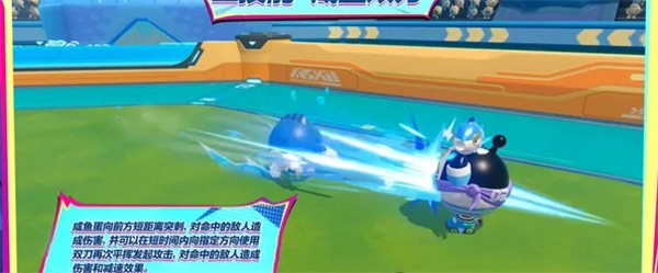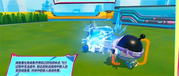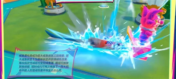 3、三技能释放后会直接化身为体型超大的咸鱼形态,不仅能让自身移动速度大幅提升,还能免疫所有控制效果,同时可以衔接小技能打出连招并造成击飞;在决赛圈开启这个大招,简直是无解的存在。