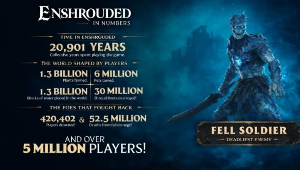 今日,Keen Games怀着激动又略带一丝紧张的心情向大家宣布:请期待2026年秋季《雾锁王国》正式版的推出。抢先体验开启后的火爆成功,让团队得以践行并拓展《雾锁王国》最初的构想,而2026年下半年正是落实这一愿景的绝佳时机。1.0版本的发布并非结束,而是持续开发的崭新开端——后续还会有更多优化与新增内容。若没有超500万名玩家的支持,这段旅程根本无法实现。开发团队再次向所有通过游戏体验、反馈建议和社区参与为游戏添砖加瓦的火之子们,致以最诚挚的感谢。以下是一些令人瞩目的游戏数据: