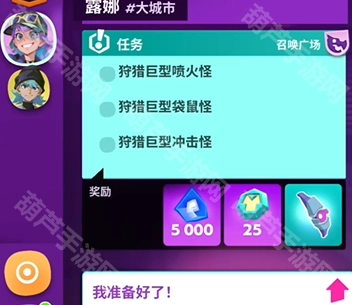 2、露娜的任务会让我们前往世界地图上的召唤广场,去狩猎巨型喷火怪、巨型袋鼠怪以及巨型冲击怪。