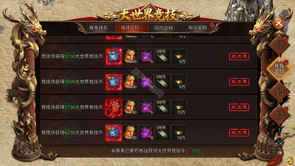 4、竞技达标奖励