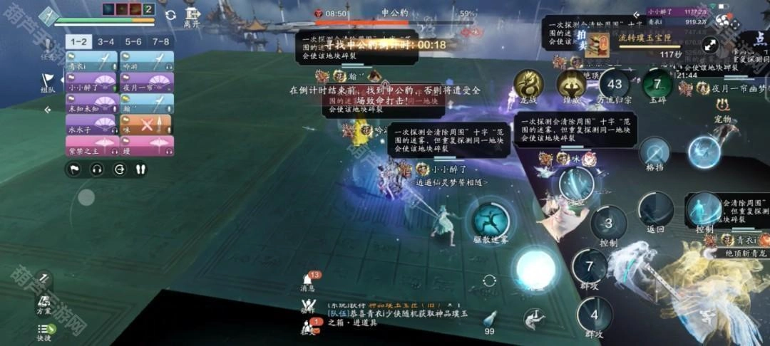 需要注意的是,当地块没有被迷雾覆盖时,使用驱散会直接击碎该地块。所以各位玩家得合理安排自己的站位,按照队伍内的排位顺序逐个释放【驱散迷雾】技能,这样既能快速清理掉场上的迷雾,又能顺利找到申公豹。不过要是运气不错的话,说不定第一次使用驱散就能直接找到目标了。