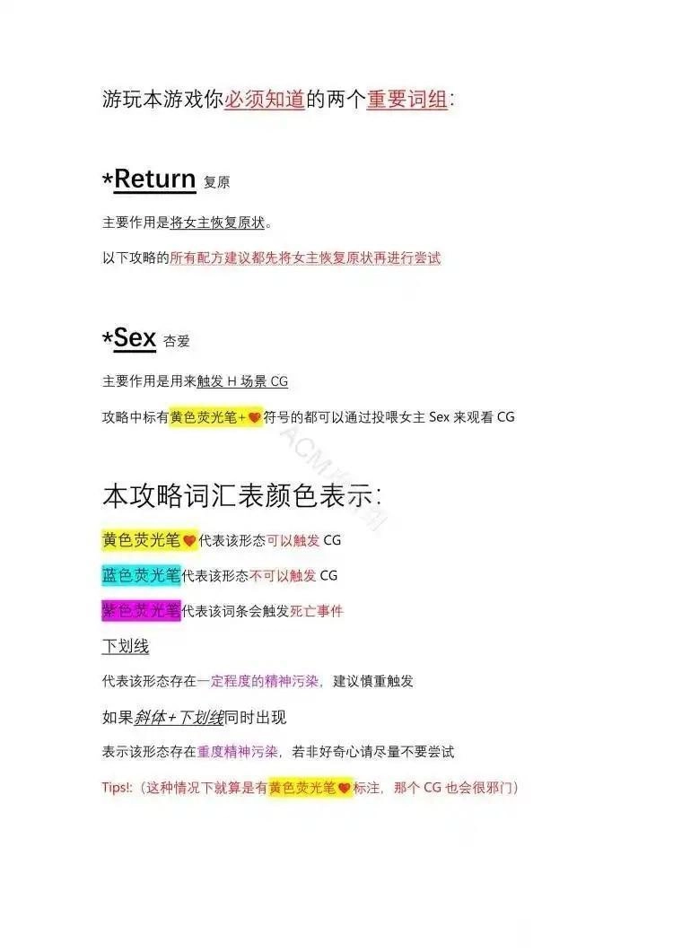 攻略中标有黄色荧光笔+符号的都可以通过投喂女主S*x来观看CG