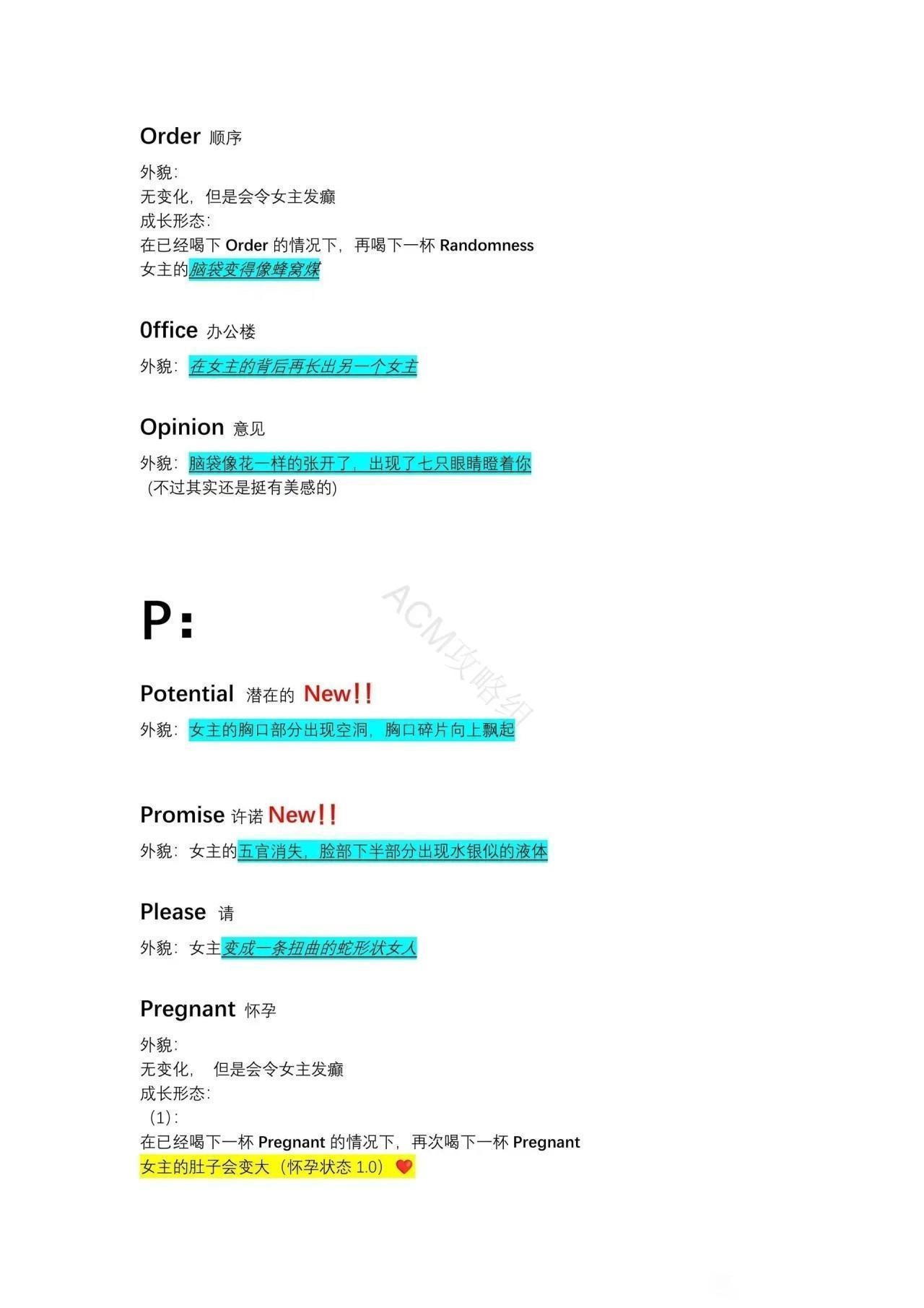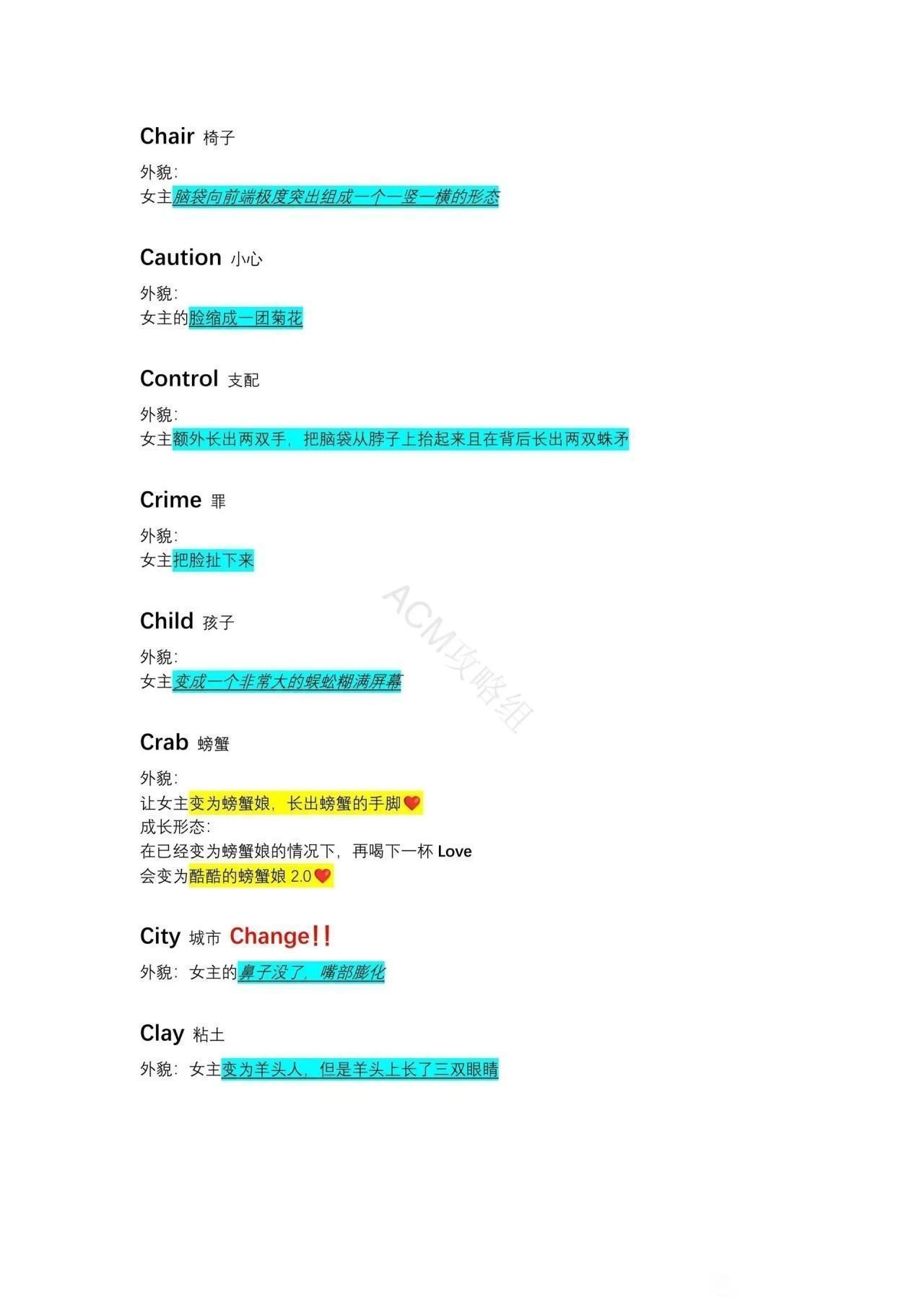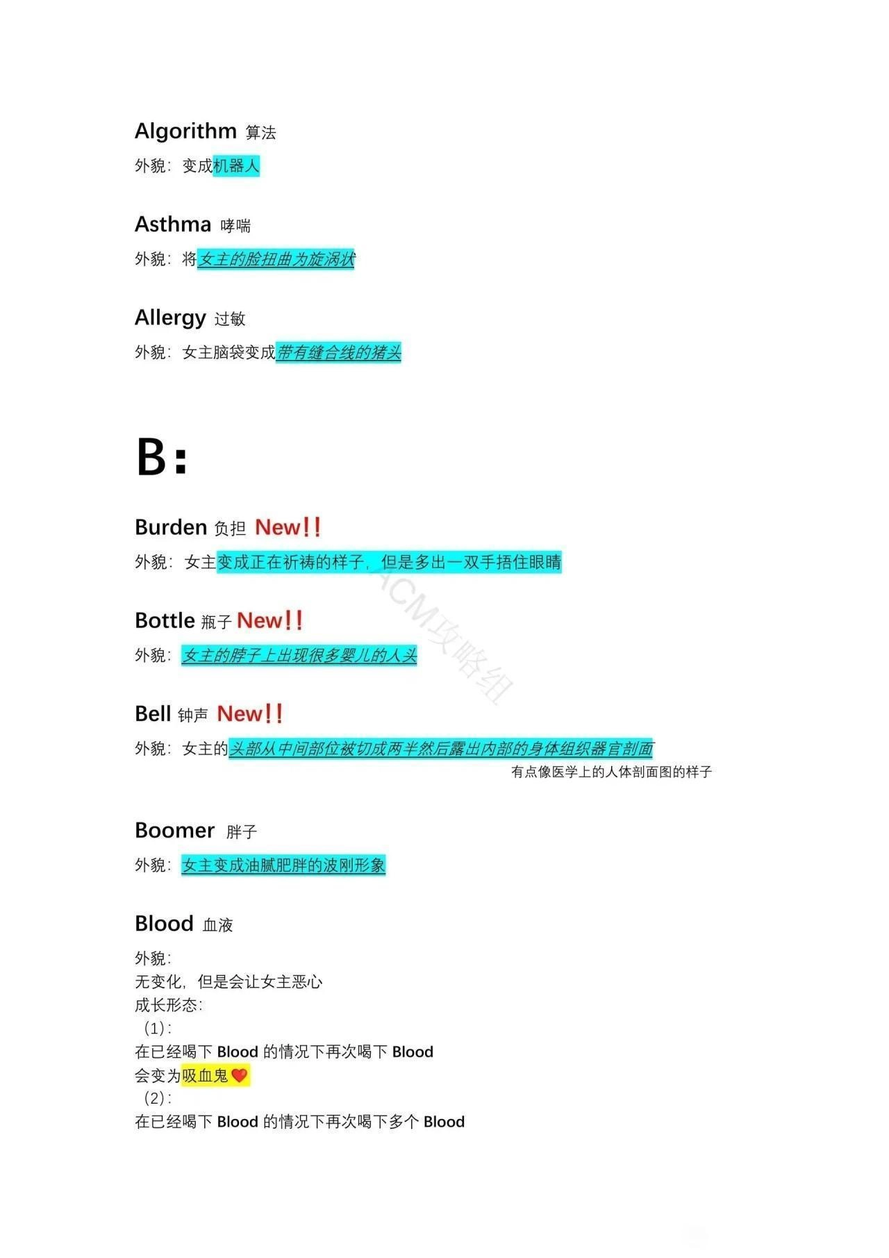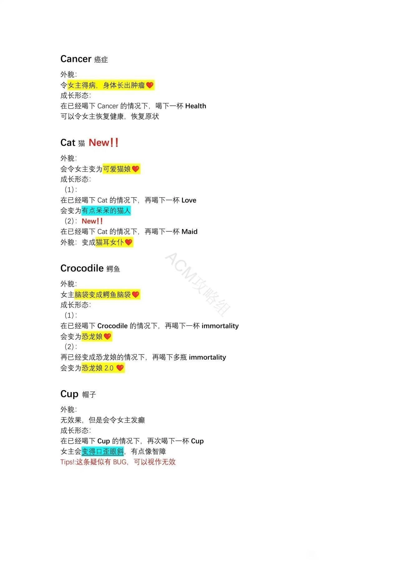 成长形态:在已经喝下 Beauty 的情况下再次喝下 Beauty女主的脸会变为两张。