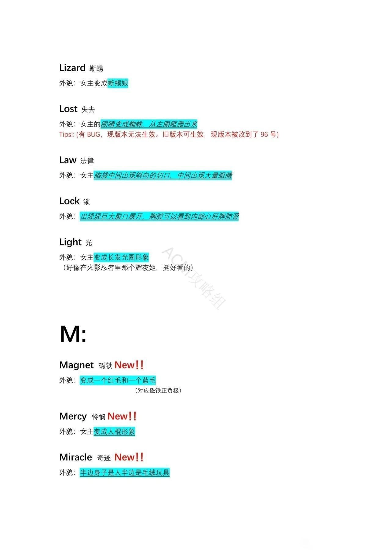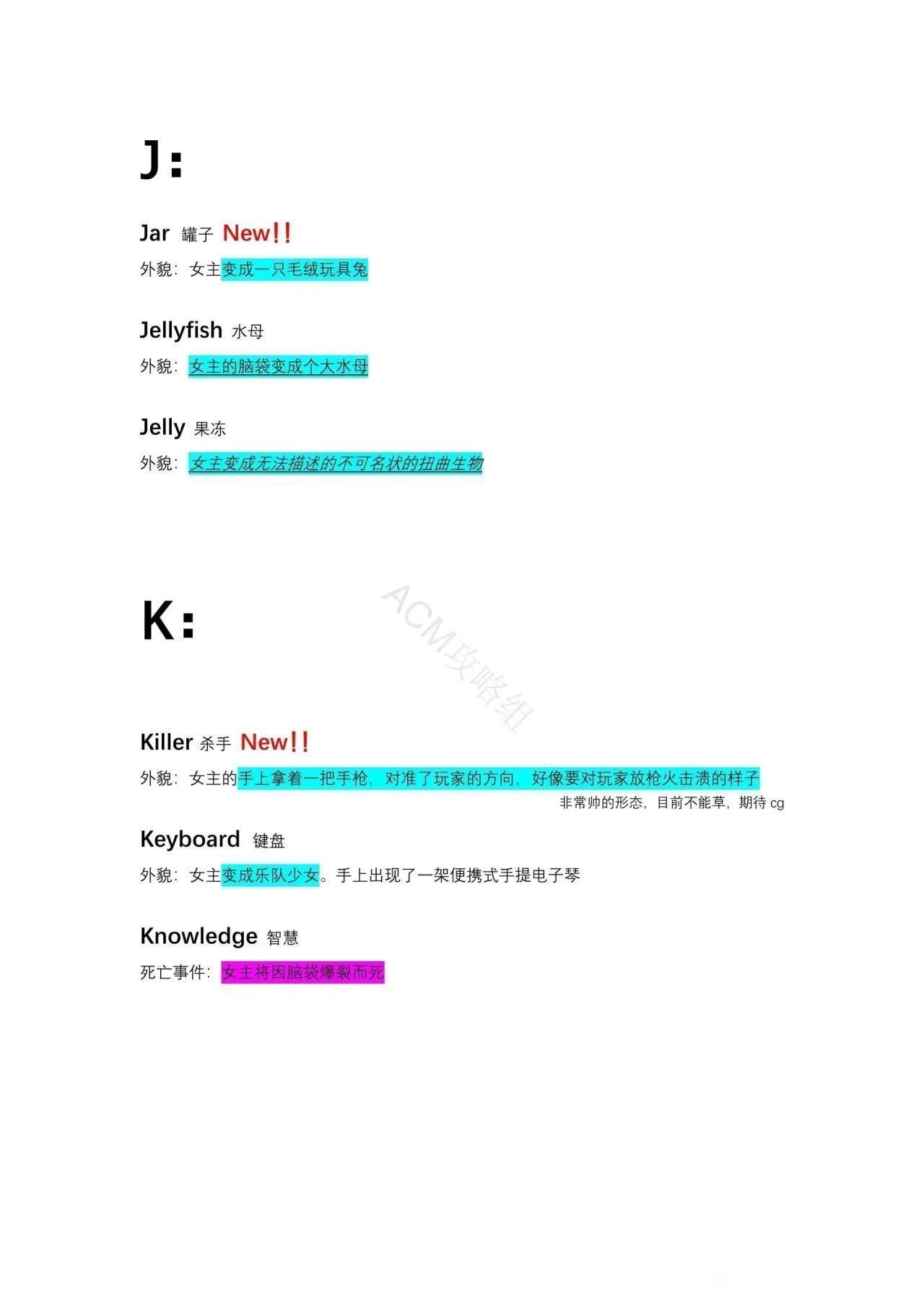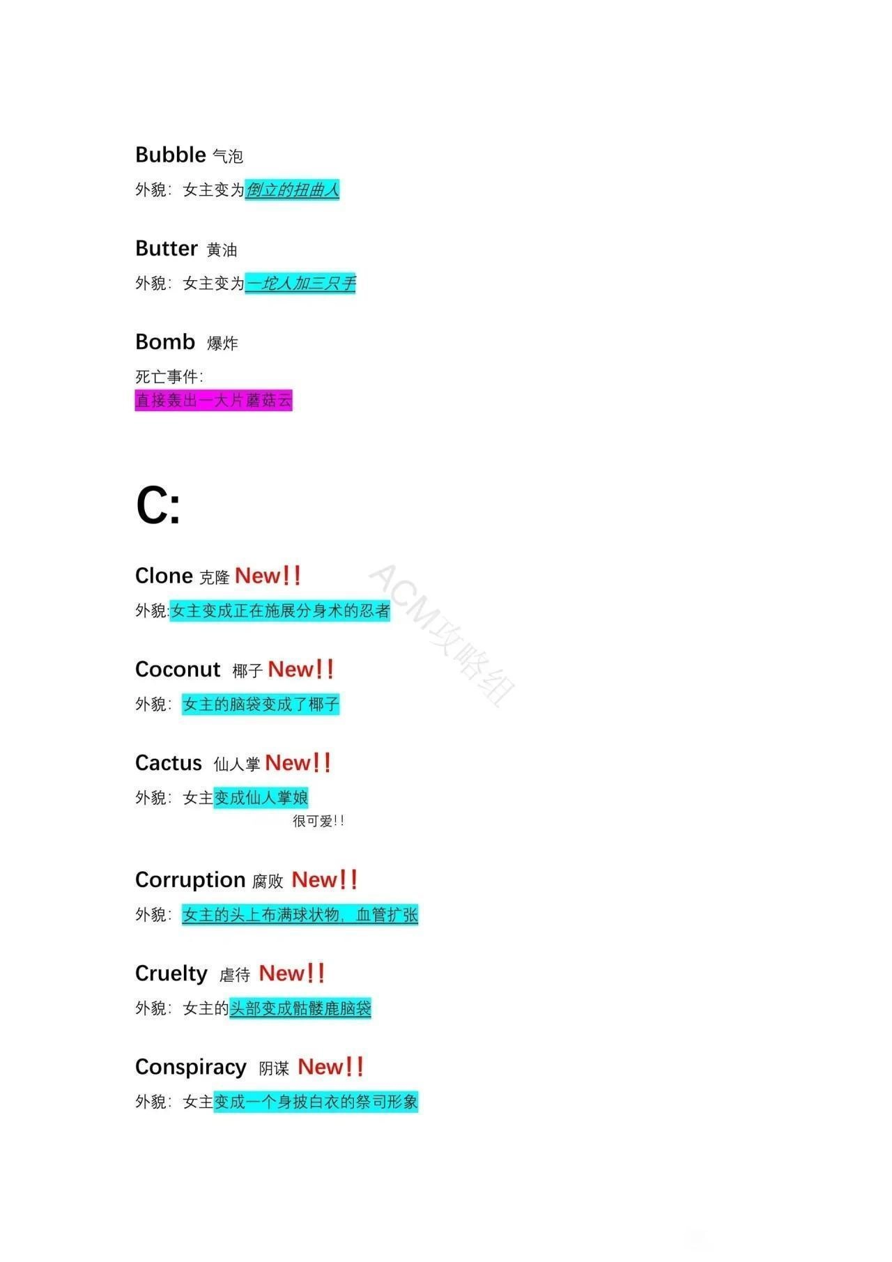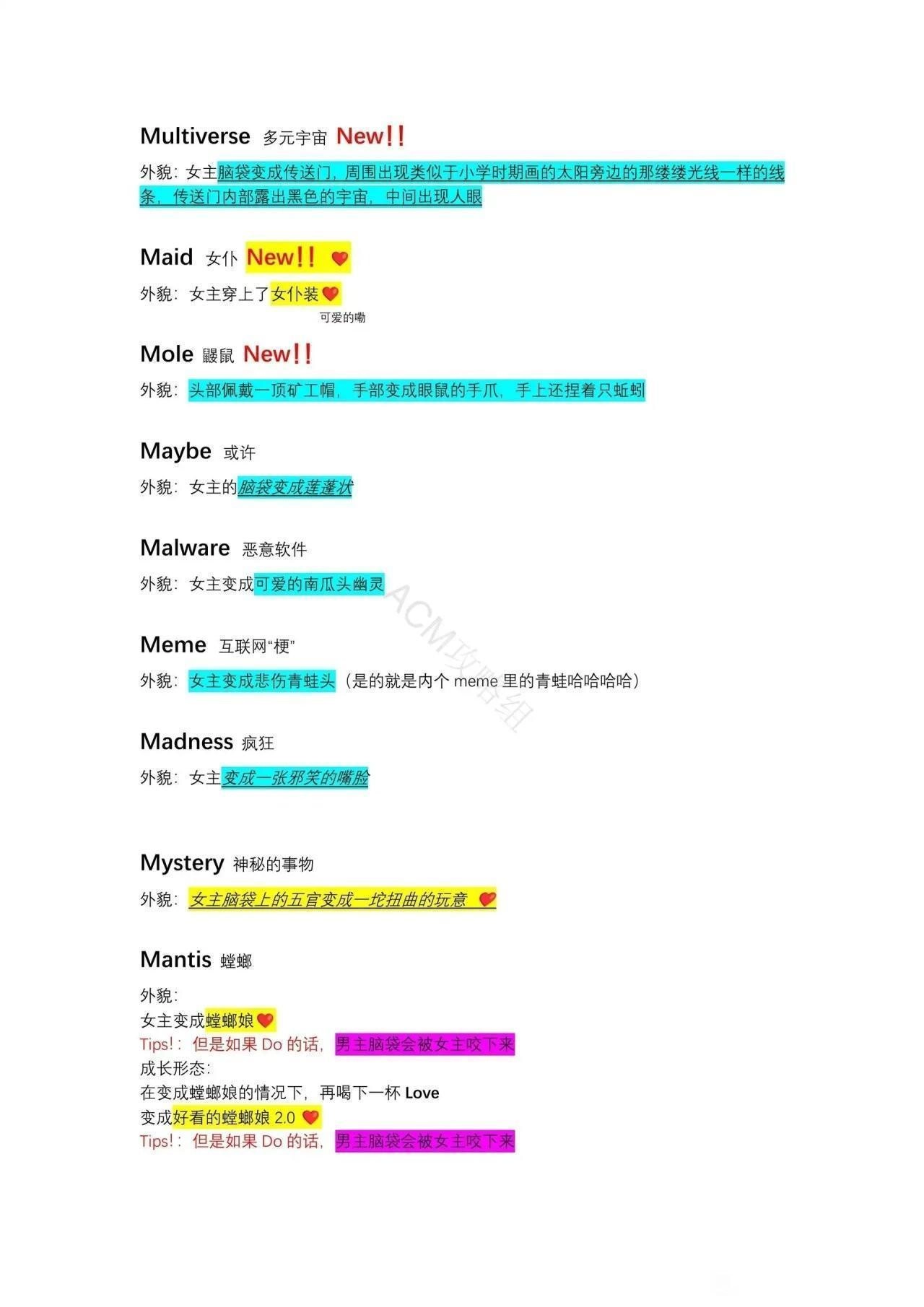 成长形态:在已经喝下 Beauty 的情况下再次喝下 Beauty女主的脸会变为两张。