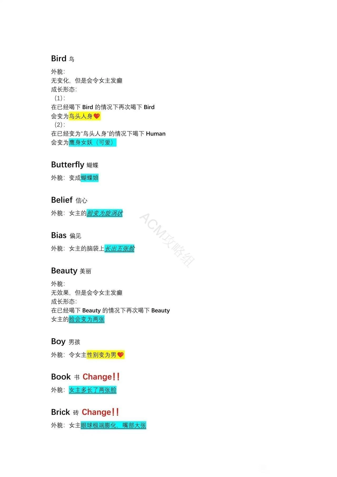 (1)在已经喝下 Bird 的情况下再次喝下 Bird会变为鸟头人身。