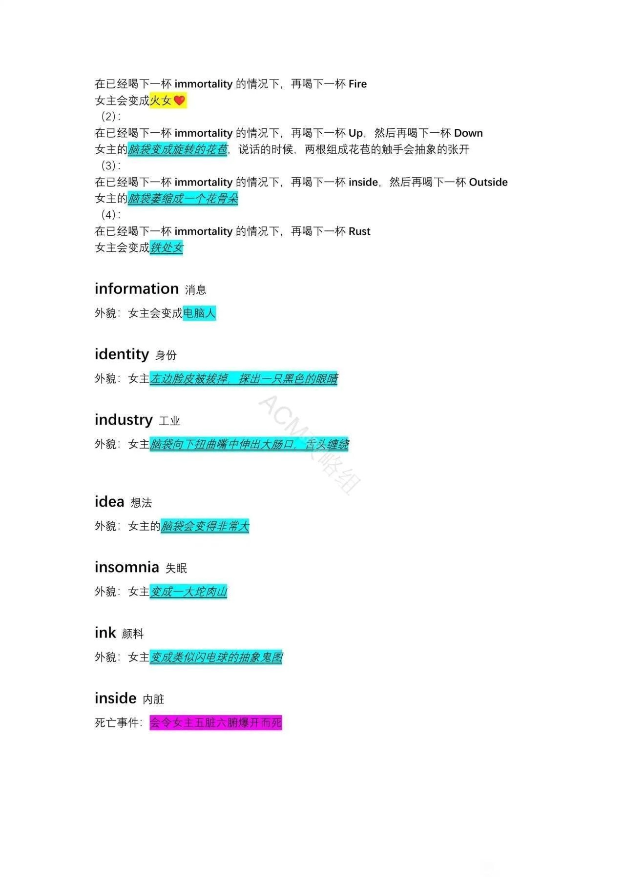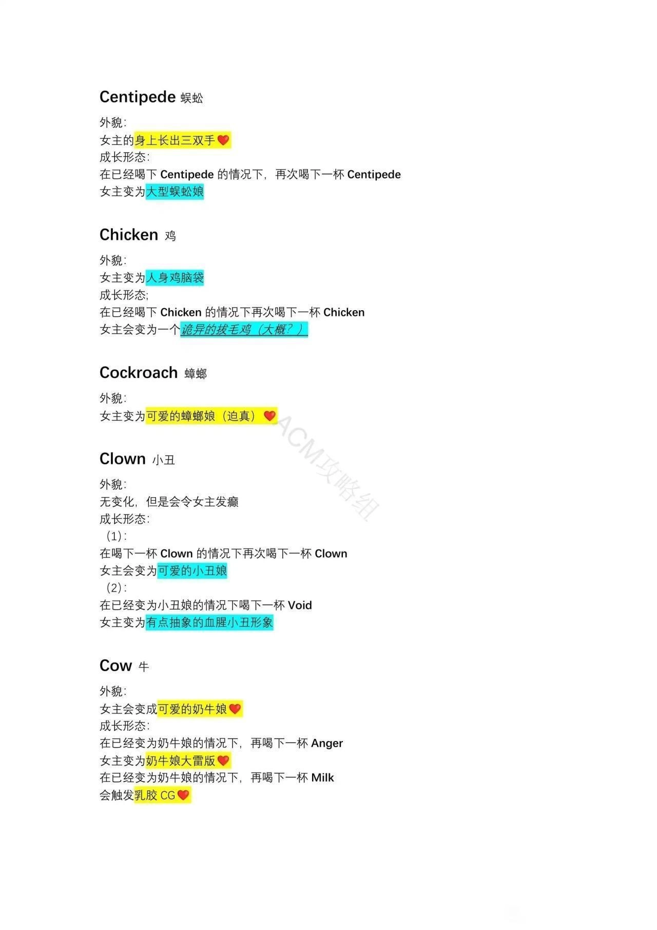 (1)在已经喝下Alien的情况下再喝下Love会变成长着人脑袋的异形。