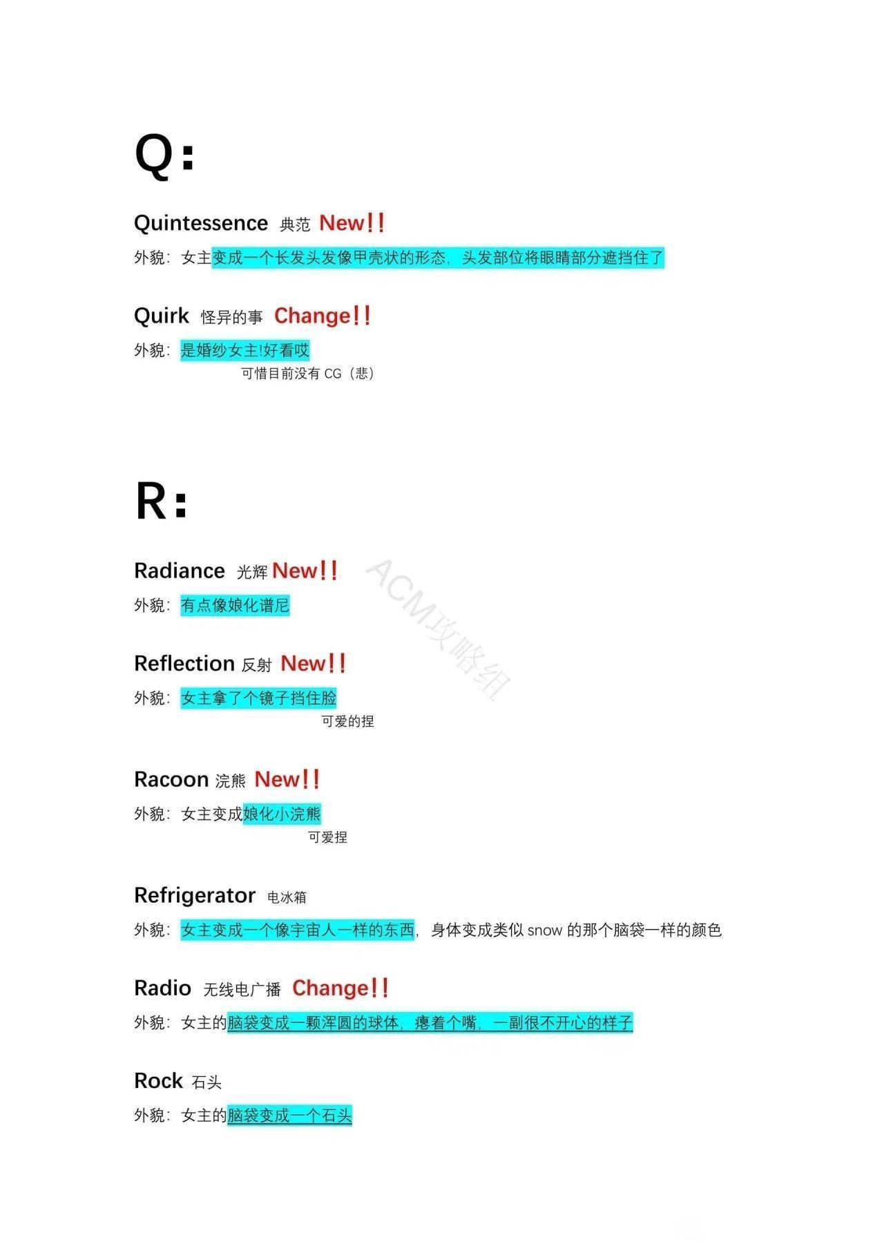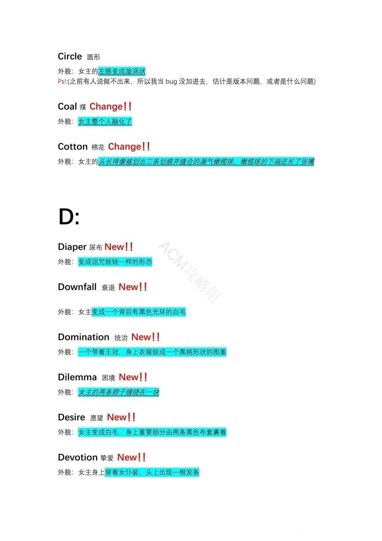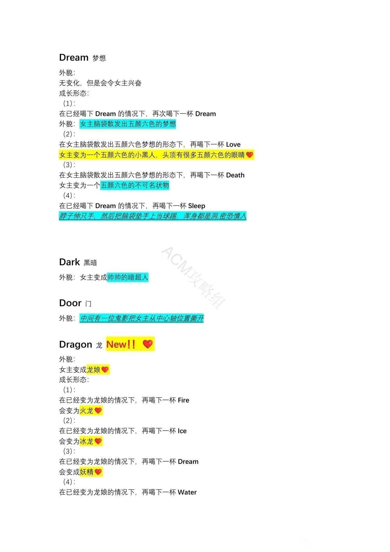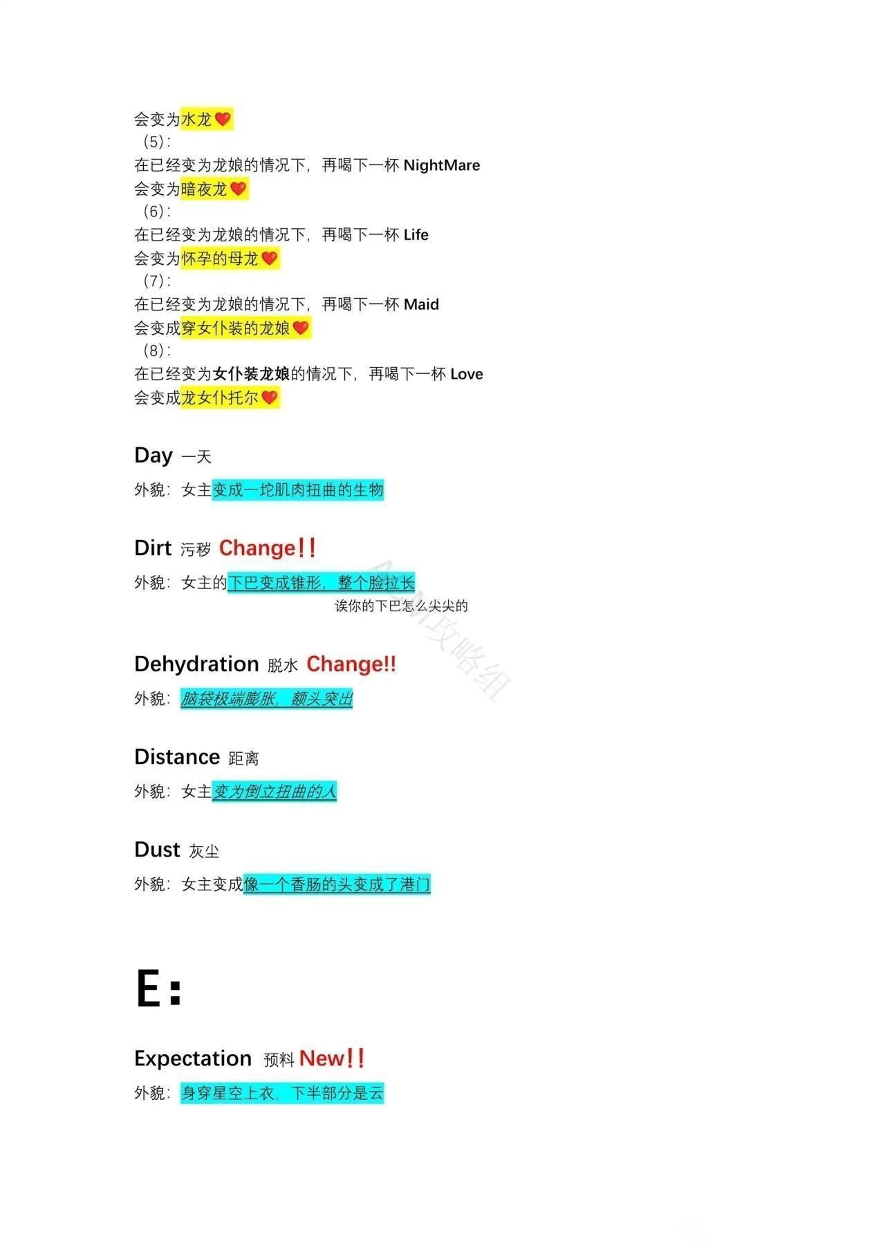 以下攻略的所有配方建议都先将女主恢复原状再进行尝试