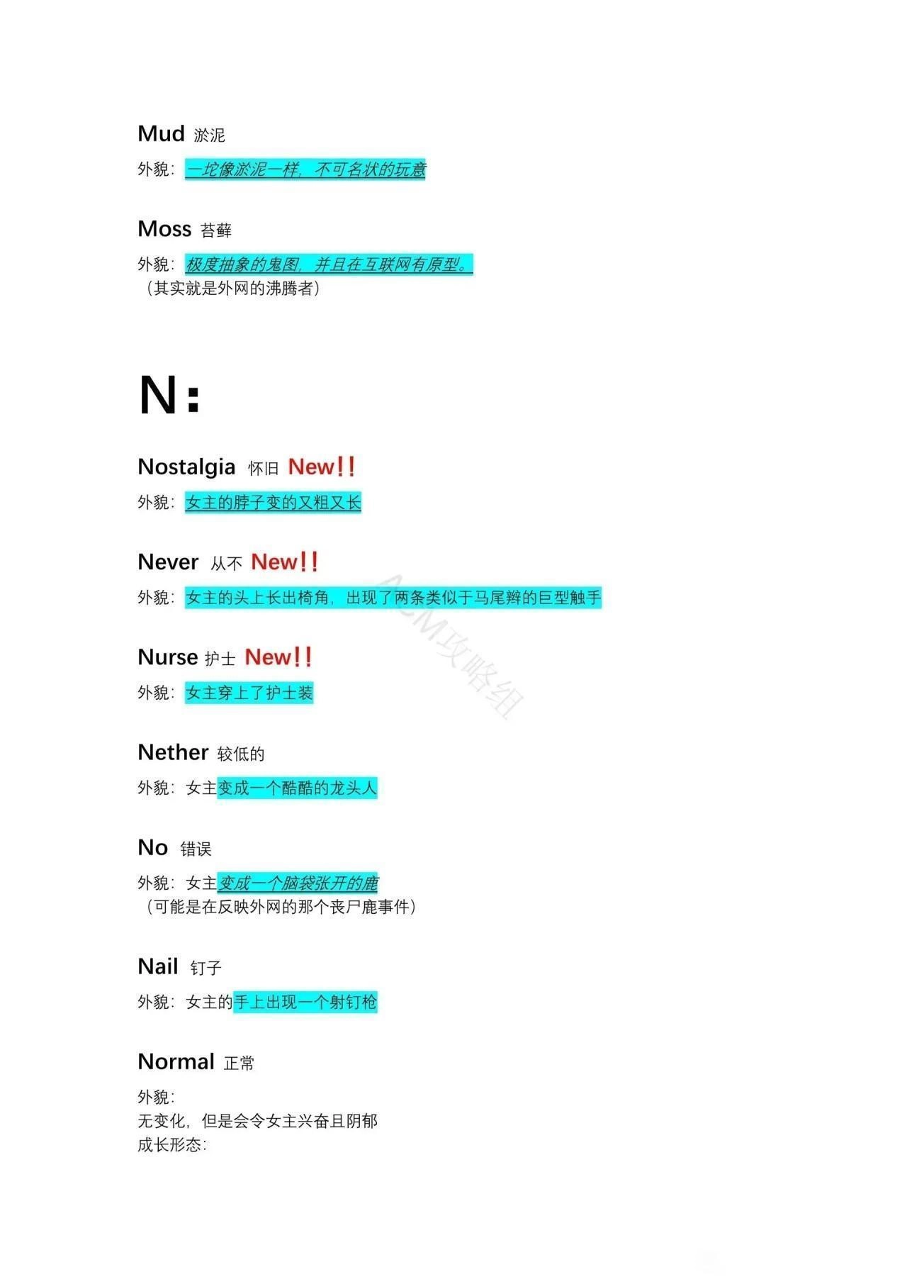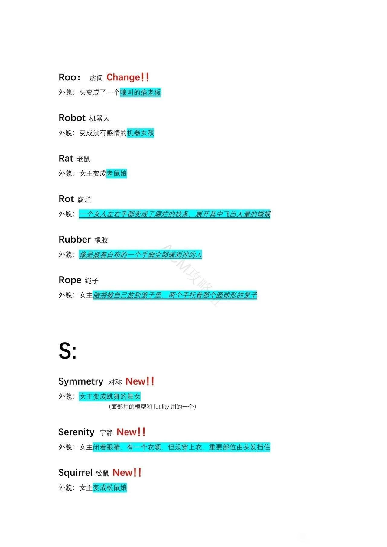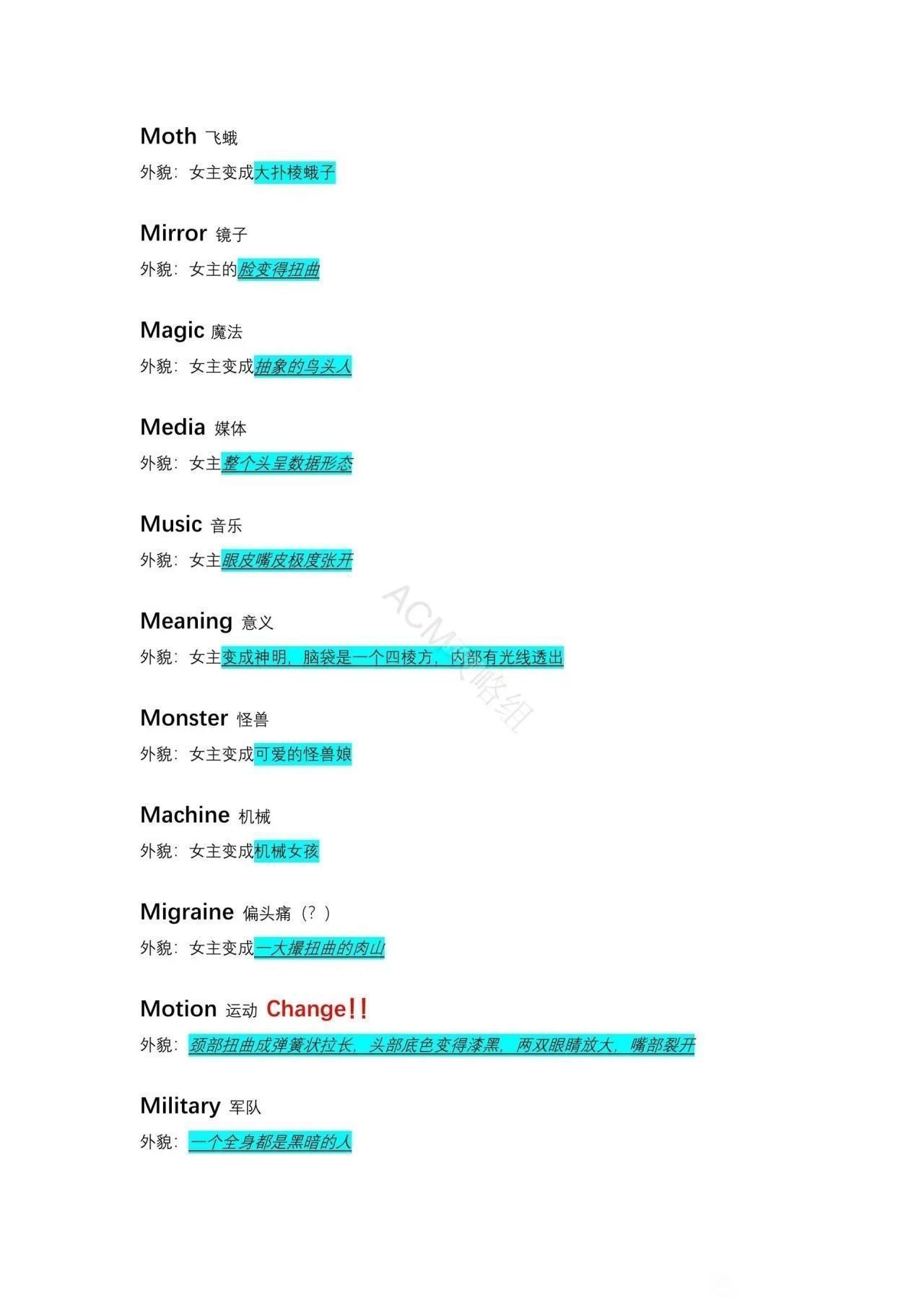 外貌:女主变为倒立的扭曲人。