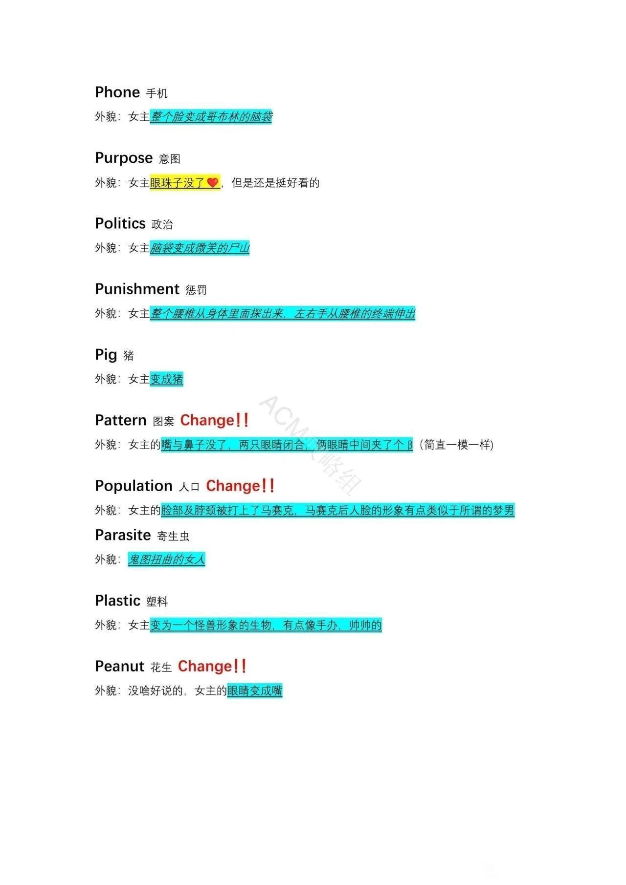 外貌:女主的脑袋变成像蚕豆一样,然后嘴部位置中空。
