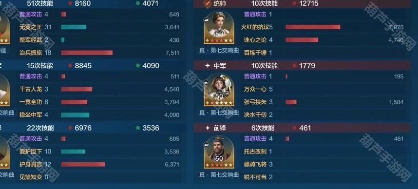 治兵振旅具备高额减伤效果,再搭配恺撒的自带技能以及整军经武的治疗能力,通常在8回合内就能打出过万伤害,实力相当强劲。