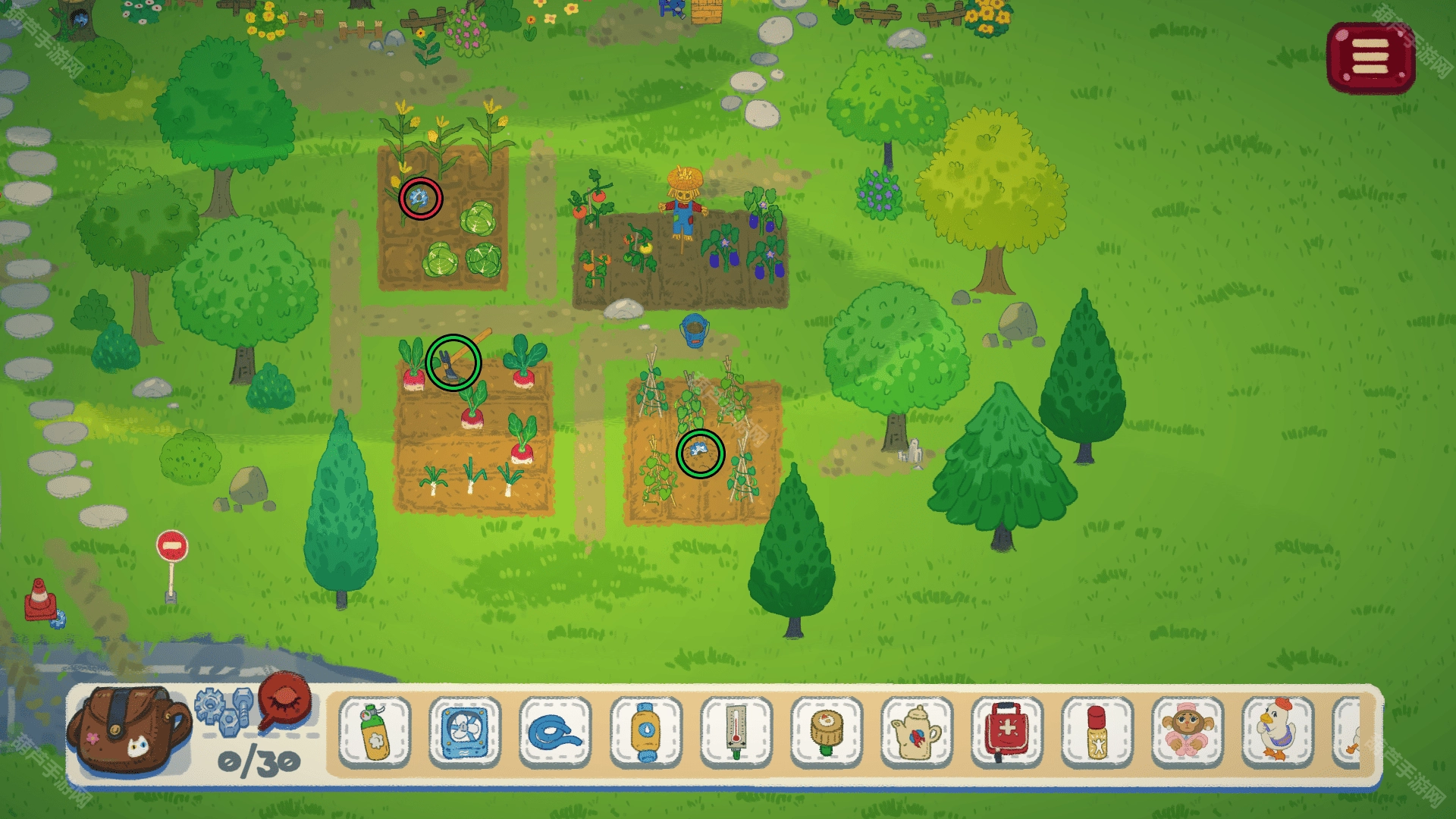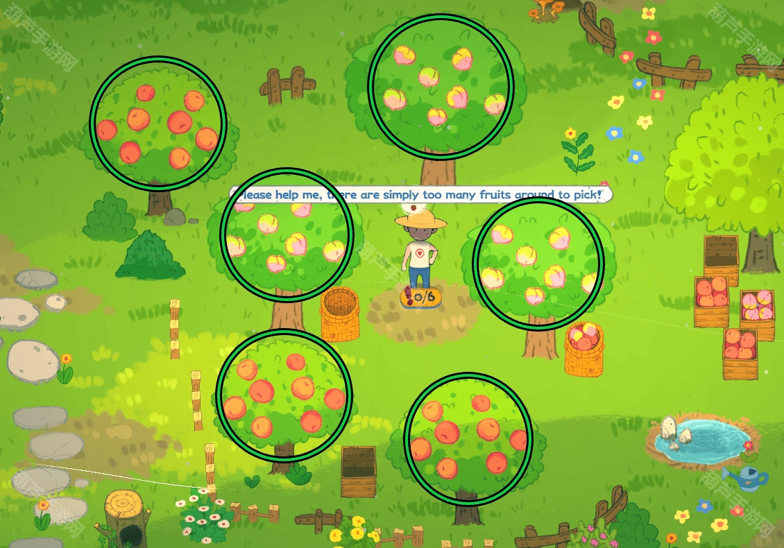 ④收集周边树上的水果(需拾取1箱方可获取1个部件)