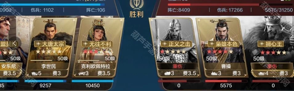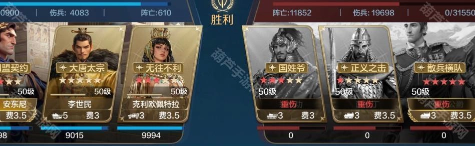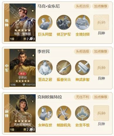 由安东尼、李世民与克里欧佩特拉构成的慢速肉队,安东尼担任统帅位并搭配镇卫护军,能有效为全队提供保护,抵御郑成功的高额爆头伤害;不过该队伍的短板在于缺乏开场减伤效果,对安东尼的红度要求较高,需要依靠其红度来扛过前两回合的伤害。