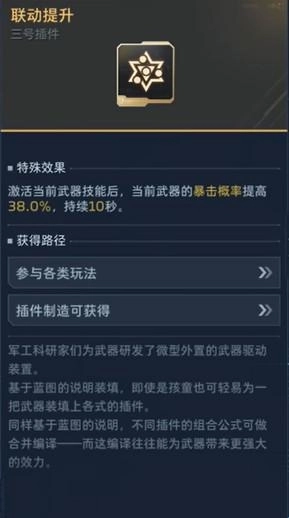 激活当前武器技能后,当前武器的暴击概率会提升38%。需要说明的是,虽然描述中提到的是“当前武器”,但实际测试发现主武器也能享受到这个增益效果。