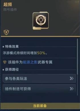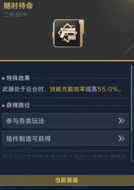 一、能源之影插件搭配方案:一号插件选择【快速装填】,二号插件选用【随时待命】,三号插件搭配【技能增援】,四号则装配专属插件【超频】。