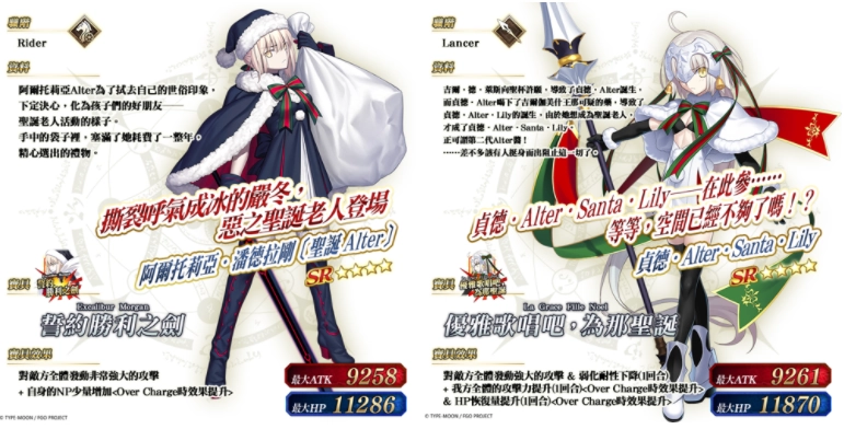 自2025年11月11日(周二)16:00起,迦勒底之门将新增「★4(SR)阿尔托莉亚·潘德拉刚〔圣诞Alter〕」与「★4(SR)贞德·Alter·Santa·Lily」的常驻特别任务「从者强化任务」。2025年11月13日(周四)16:00起,「★5(SSR)埃列什基伽勒」的同名常驻特别任务也将上线,通关后不仅能强化对应从者,还可领取圣晶石奖励。