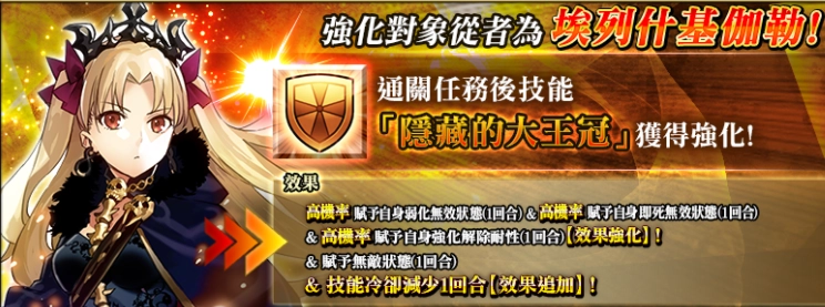 2025年11月11日(周二)16:00至2025年11月25日(周二)12:59期间,强化从者时大成功(经验值2倍奖励)与极大成功(经验值3倍奖励)的发生率将限时提升至2倍;同时,迦勒底之门的每日任务中,所有「蒐集种火」任务的AP消耗量,以及强化从者所需的QP消耗量,也将限时下调为原来的1/2。