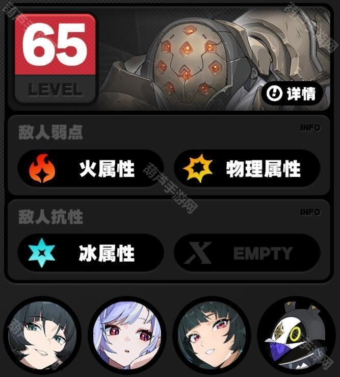 敌人存在火属性弱点,伊芙琳领衔的队伍表现也相当不错。尽管这支队伍并非专攻异常状态的配置,但敌人会主动为自身附加感电效果,借助伊芙琳搭配莱特或柏妮思,能够积累足量的火异常值,触发灼烧状态,进而让敌人陷入紊乱状态。