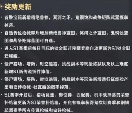 当前赛季秘藏在下赛季将更名为“S1钛金跃迁秘藏”。