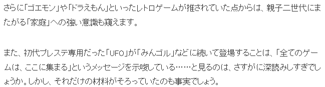 最后,像PS一代主机的专属游戏《UFO》《大众高尔夫》这类作品也将进行移植,任天堂此举或许是在传递“所有游戏我都要收入囊中”的野心。