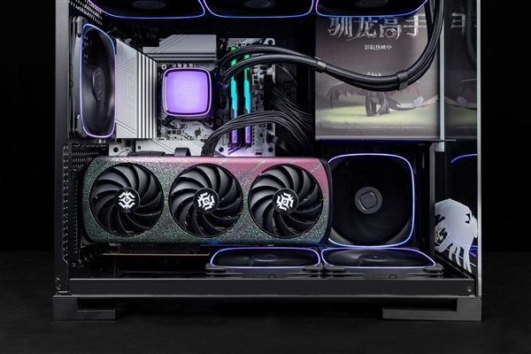 显卡运用了潮流的撞色设计,正面特意进行了珠光变彩工艺处理,让不同角度能展现出不一样的色彩。散热部分采用升级后的冰芯2.0散热系统,保障GPU在长时间高负载状态下维持低温且稳定运行。此外,这款显卡还配置了压铸合金背板与坚固的金属中框,进一步增强了显卡的整体坚固程度。
