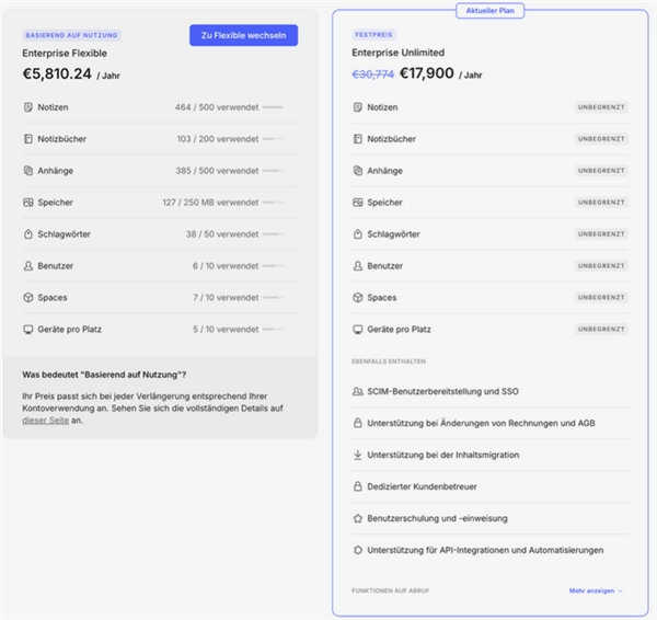 Enterprise企业订阅包含“灵活版(Flexible)”与“无限版(Unlimited)”两类方案,灵活版的年订阅费用是5810欧元(折合人民币约47508元),无限版的年订阅费用则达到17900欧元(折合人民币约14.6万元)。