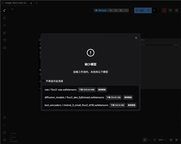 ComfyUI 本身没有内置这些权重文件,而是会在实际需要时从 Hugging Face 之类的仓库里按需进行下载。这类文件的体积一般都比较大(像 FLUX.2 就会因版本差异,大小可能超过 30GB),所以系统得有足够的存储空间,同时也要预留出对应的下载时间。
