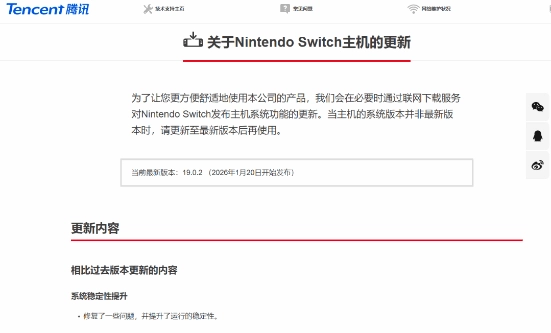 近日有玩家留意到,国行Switch毫无预兆地推送了全新的系统更新,此次更新的版本号为19.0.2。值得注意的是,这个版本并没有添加任何全新的功能,仅仅是针对部分已存在的问题进行了修复,同时也对系统的运行稳定性做出了提升。