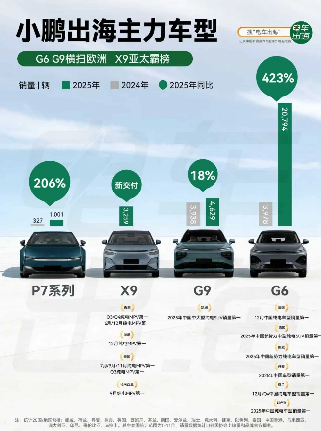 这里小雷得提一下小鹏的王牌组合——G6和P9,特别是G6,去年销量同比猛增423%,还在荷兰、丹麦多次登顶中国纯电车型销量榜首。