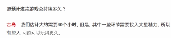 制作人还透露了游戏的大致时长,称游玩时长约为40小时上下。游戏内也设有可供深度探索的内容,因此不同玩家的实际游玩时间可能会更长。