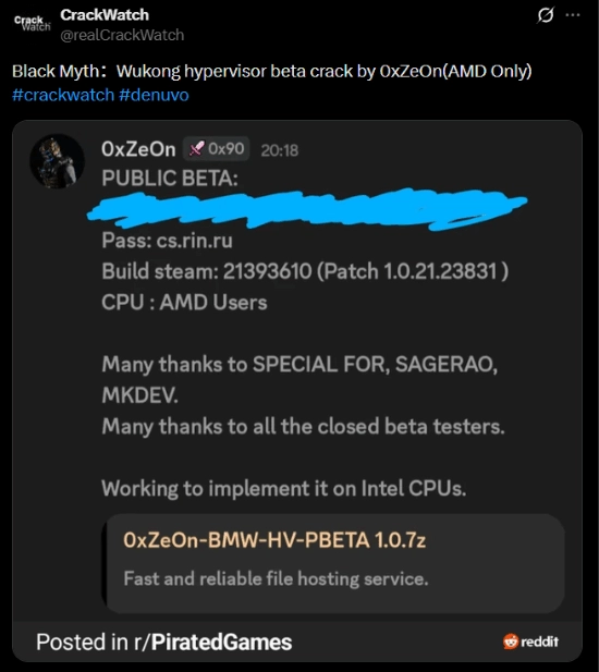 根据外媒playground.ru的最新报道,者0xZe0n已公开推出针对《黑神话:悟空》Denuvo加密的测试版程序,该程序通过虚拟机监控器(Hypervisor)技术实现。不过这一方案目前存在显著局限性:仅适配特定硬件环境,且仅限AMD处理器平台运行,同时要求用户手动关闭系统多项安全防护功能。对于硬件配置不符或不愿调整系统设置的玩家来说,仍需静待后续更完善的本推出。
