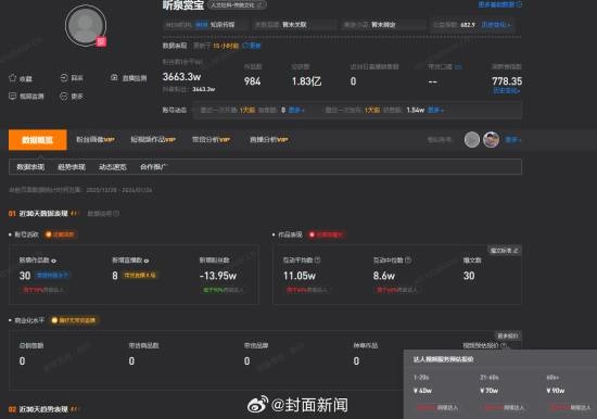 第三方数据表明,听泉赏宝短视频平台的粉丝数量已突破3663万。在该平台上,时长1至20秒的视频报价为40万,21至60秒的视频报价是70万,而60秒以上的视频报价则达到90万。