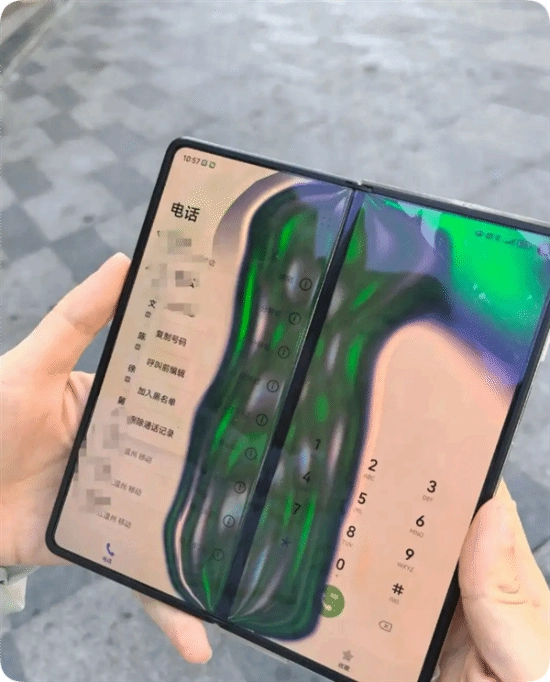 从网友发布的图片来看,这类手机单屏显示大多正常,但一经展开,屏幕便出现大面积 “极光色” 故障;