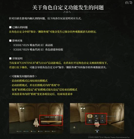 【《CODE VEIN 噬血代码 II》角色自定义功能相关公告】