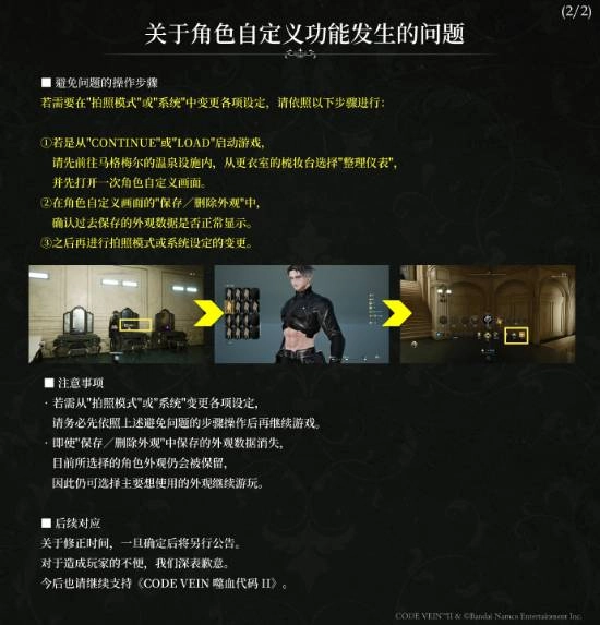 感谢各位玩家的理解与配合,还请大家继续支持《CODE VEIN 噬血代码 II》!