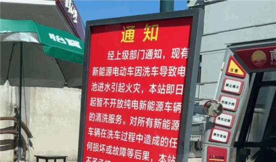 据悉,加油站这么做并非没有缘由,国内已经发生过多起纯电动汽车在洗车过程中,由于大容量电池进水而导致车辆起火的情况。