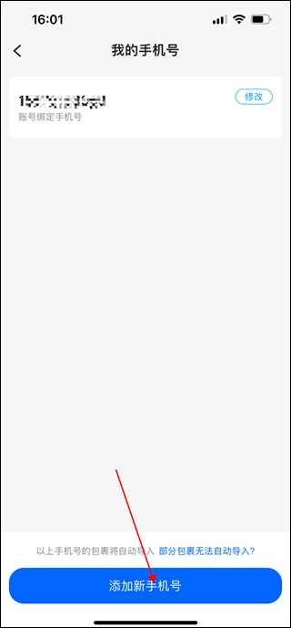 进入我的手机号页面后,点击页面底部的“添加新手机号”按钮。