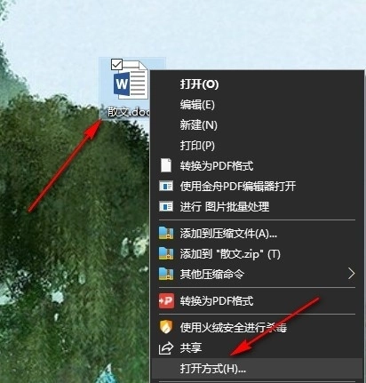 1、在桌面找到一个文字文档,右键点击它,接着选择“打开方式”,然后在弹出的选项里点击“Word”。