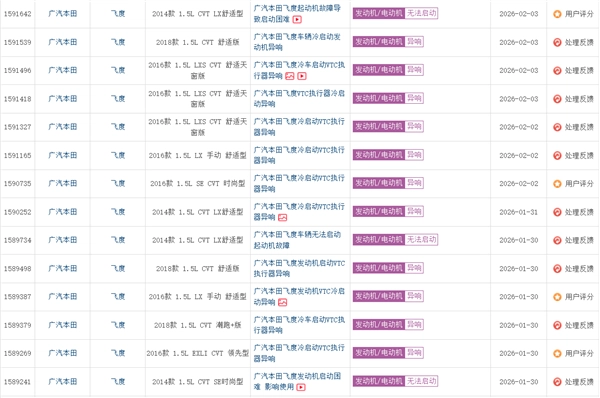 而且,这个问题出现的次数正慢慢变多,我去车质网、汽车论坛这些平台查了查,发现很多三代飞度(GK5)的车主都提到有一样的故障。