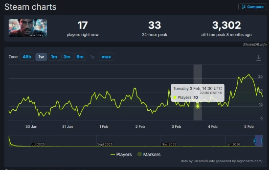 昨日,Build a Rocket Boy 宣布将对《心之眼》进行一次近乎“重启”的更新。不过,这次调整虽没怎么引发关注,游戏的在线人数却猛增了约两倍——从2月3日的10人左右涨到了30人左右。