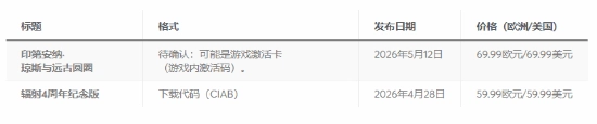 关于数字版的具体上线时间,目前还存在一些不确定性。有爆料者指出,《夺宝奇兵:古老之圈》的数字版大概率也会在2026年5月12日推出;而《辐射4:周年纪念版》则或许会在今日直面会结束后直接登陆Nintendo eShop。