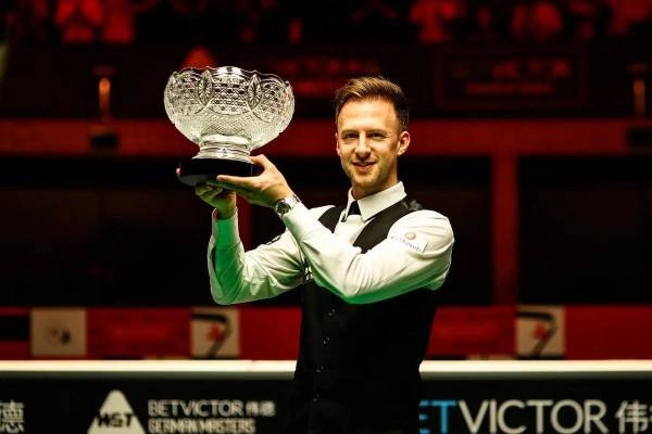2026年斯诺克德国大师赛冠军贾德·特鲁姆普于2月2日在社交平台上分享了自己手捧奖杯的视频。