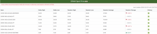 快科技2月5日消息,Trendforce最新数据显示,当前国际DRAM颗粒现货市场中,DDR4与DDR5的部分颗粒价格延续下跌态势,而价格上涨的颗粒则主要集中在DDR3类型。