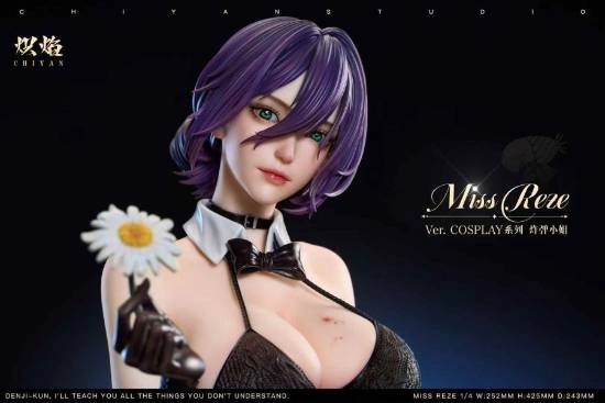 炽焰工作室推出了人气动漫《电锯人》里极具魅力的角色“炸弹小姐”蕾塞(Reze)的1/4比例高端雕像。
