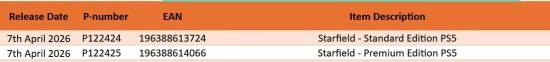 从游戏分销商处获取的一份内部文件显示,《星空》预计在2026年4月7日于PlayStation 5平台正式推出。