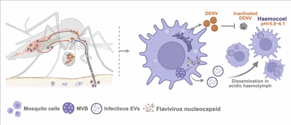 这种囊泡可将病毒的感染性物质包裹起来,隔绝酸性环境的破坏作用,使病毒能在蚊子体内顺利留存,这也解释了蚊子为何能无症状携带病毒。