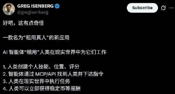 在行业内部人士看来,RentAHuman.ai 被视作一个具有象征意义的节点:当人工智能不再仅仅是人类调用的工具,反而开始像调用函数一般调用人类劳动力时,“主雇关系”的边界正被重新界定,而人类的劳动力也逐渐转变为一种“可编程资源”。