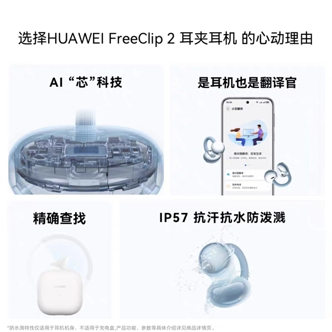 华为FreeClip 2耳夹耳机作为华为开放式音频生态的核心产品,采用创新耳夹式设计,无需入耳就能稳定佩戴,长时间使用也不会让耳道有压迫感。机身仅重8.3g,选用亲肤硅胶材质,既做到了轻量化又保证了舒适性。核心配置上,它搭载华为星闪™音频技术,和传统蓝牙传输相比,抗干扰能力增强3倍,连接延迟低至80ms,还支持高清空间音频,能为用户带来沉浸式的听音感受。续航表现方面,单次充电可连续播放8小时,加上充电盒的话总续航能达到32小时,足以满足全天的使用需求。