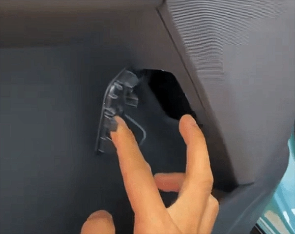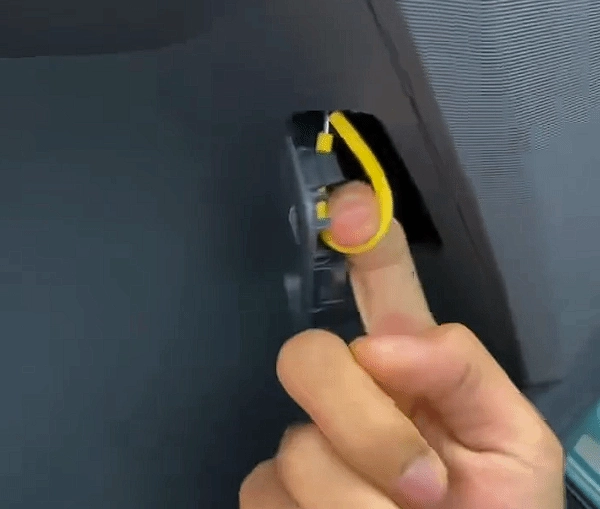 找到它就能打开车门了吗?更让人意想不到的是,这其实只是个盖板——扣开后表面看起来空空如也,可真正能开门的拉绳就藏在里面,得把手伸进去摸索到它,再拉动才能打开车门。